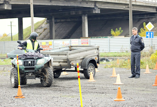 Практическая часть: необходимо выполнить пять упражнений («Змейка», «Габаритный коридор», «Габаритный полукруг», "Разгон-торможение", "Въезд в бокс") на квадроцикле. Экзамен очень простой, после нашего обучения тебе будет легко сдать его на отлично